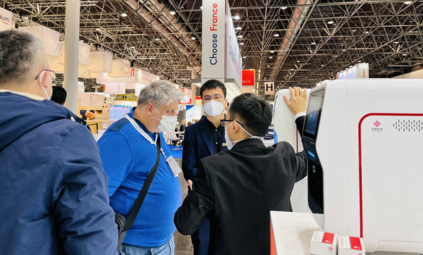巴西一位合作多年的客户特意来到bb贝博艾弗森展台,沟通四通道iPonatic合作事宜。在听取工作人员的详细介绍并观看操作后,他表示,“你们的POCT可搭载的项目很多,正是我们所需要的,我们非常感兴趣。”